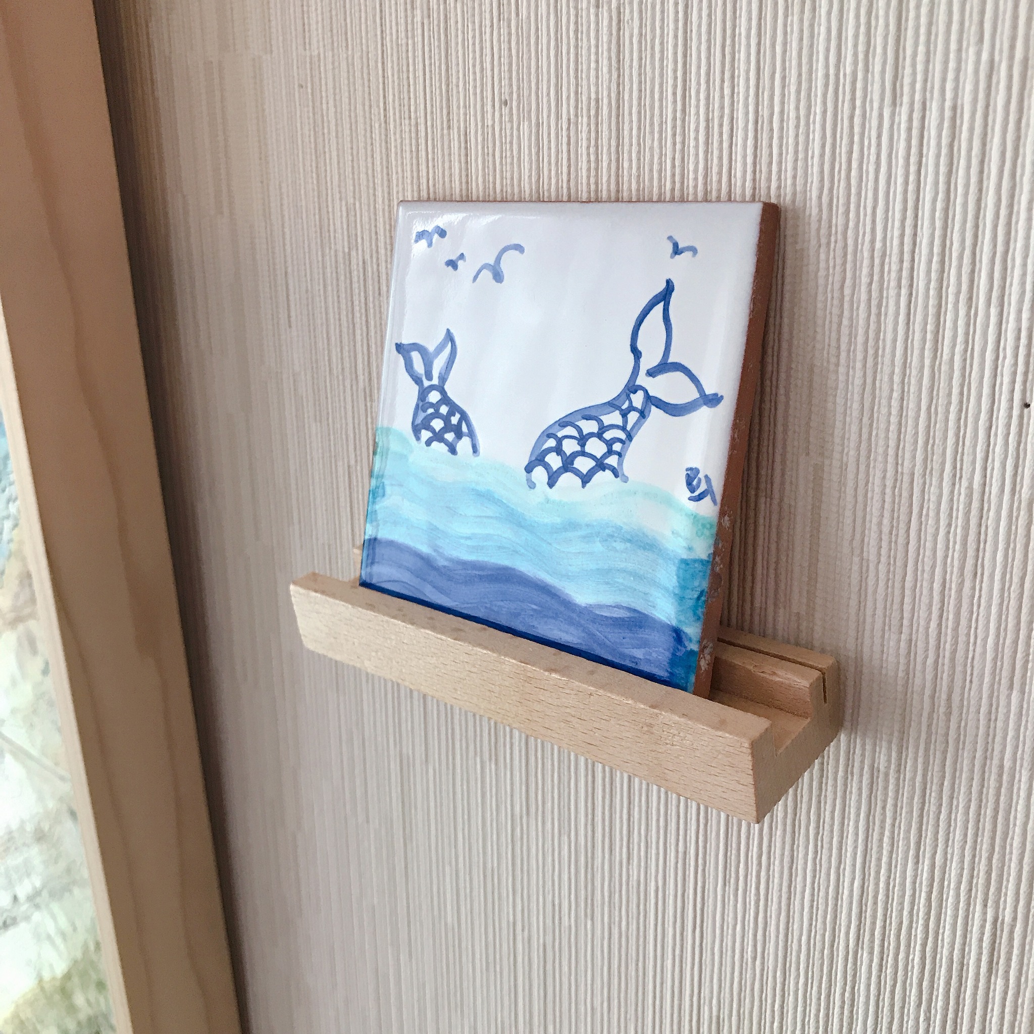 プカプカ浮かぶ様がユニークな絵付けのミニタイルです。