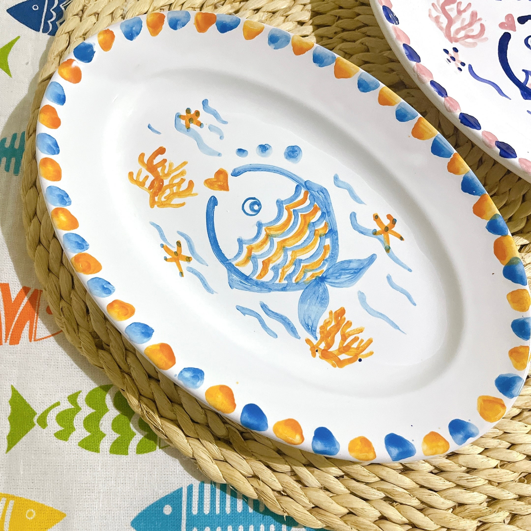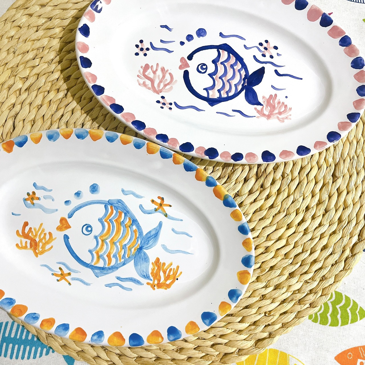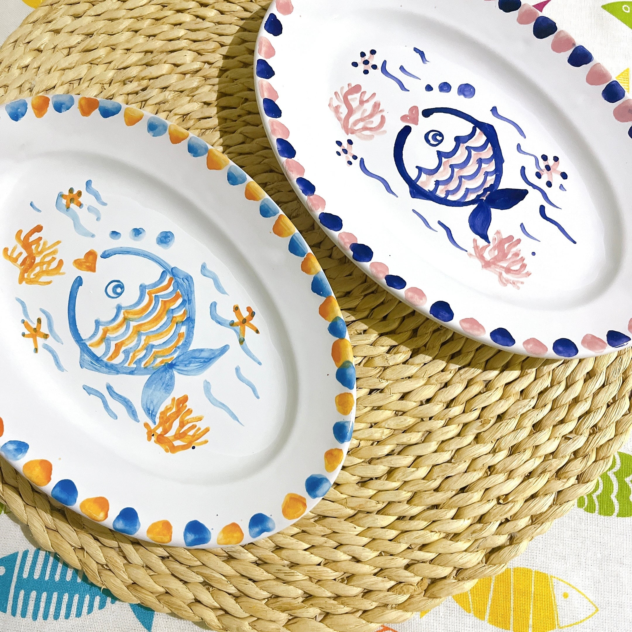 浦安の陶器工房<Bottega Junko>からお届けするマヨリカ焼きのオーバル皿です。