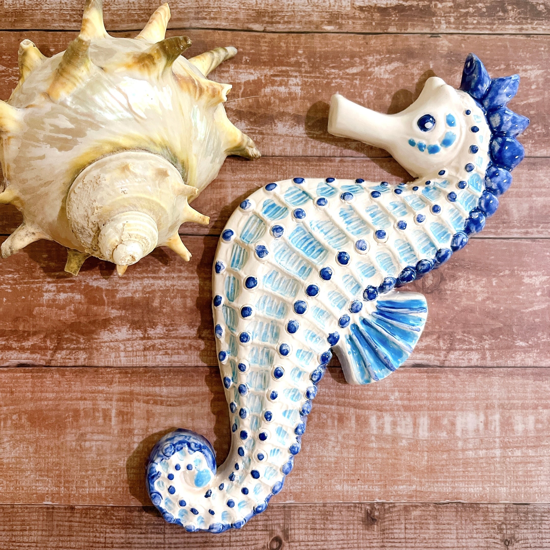 浦安の陶器工房<Bottega Junko>からお届けするマヨリカ焼きのタツノオトシゴです。