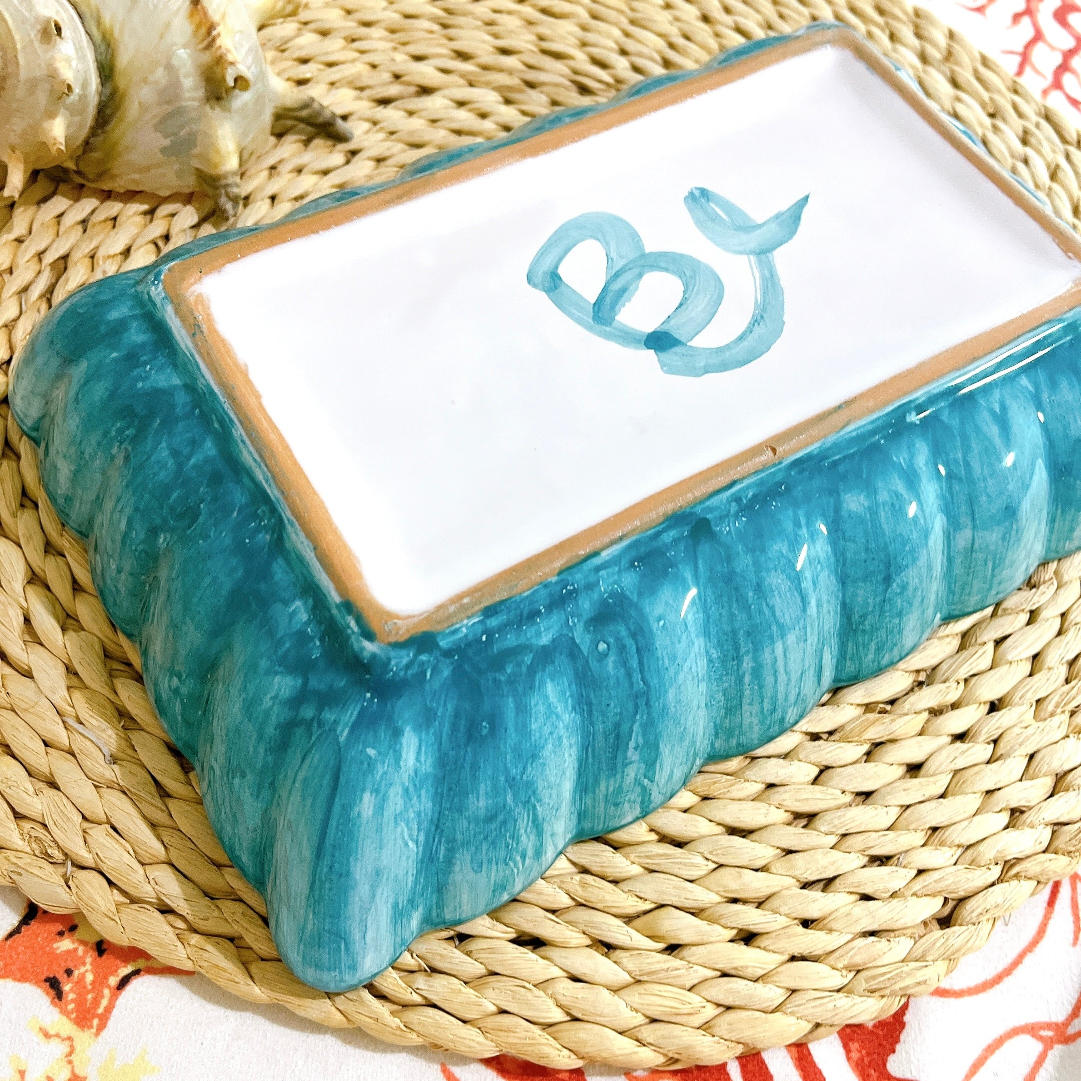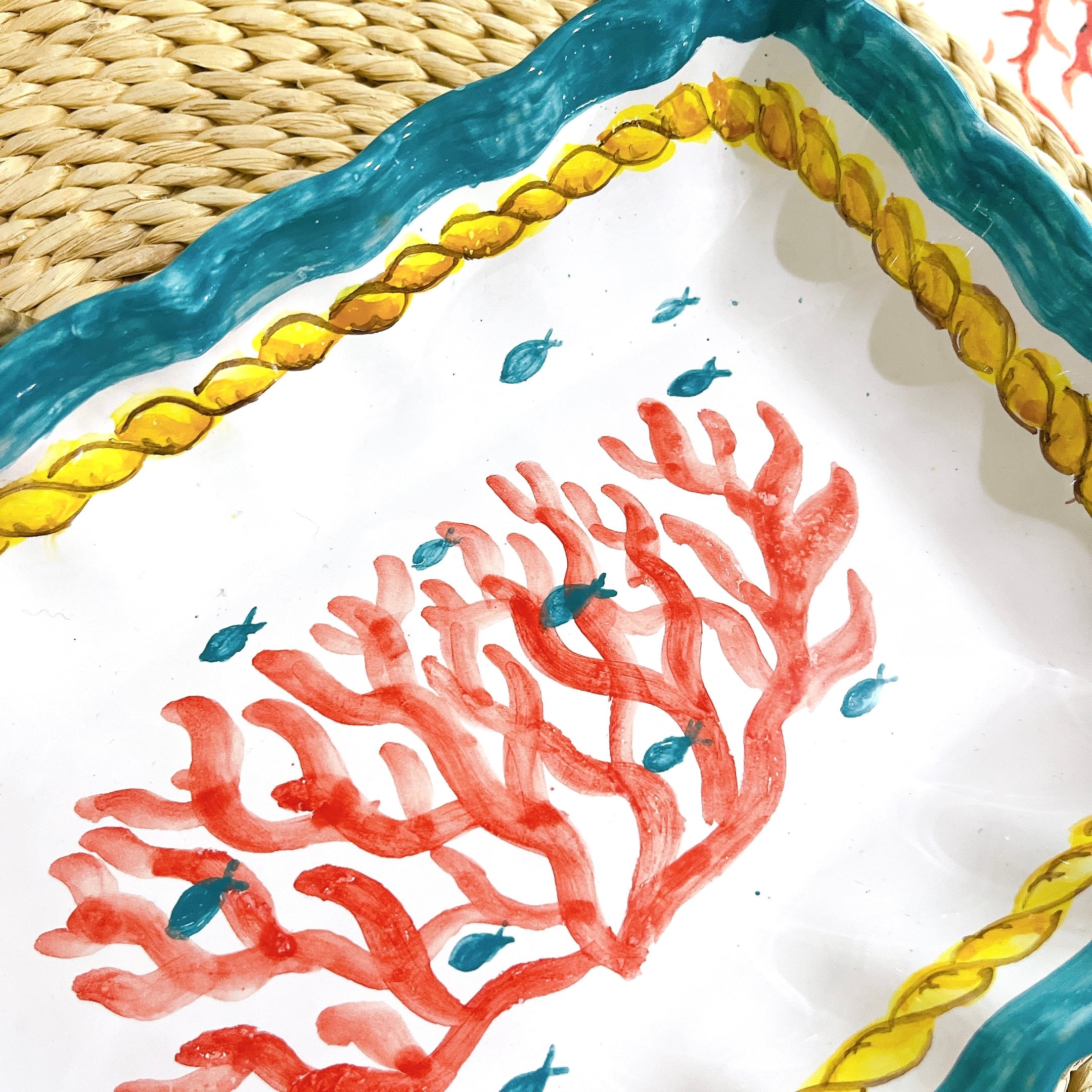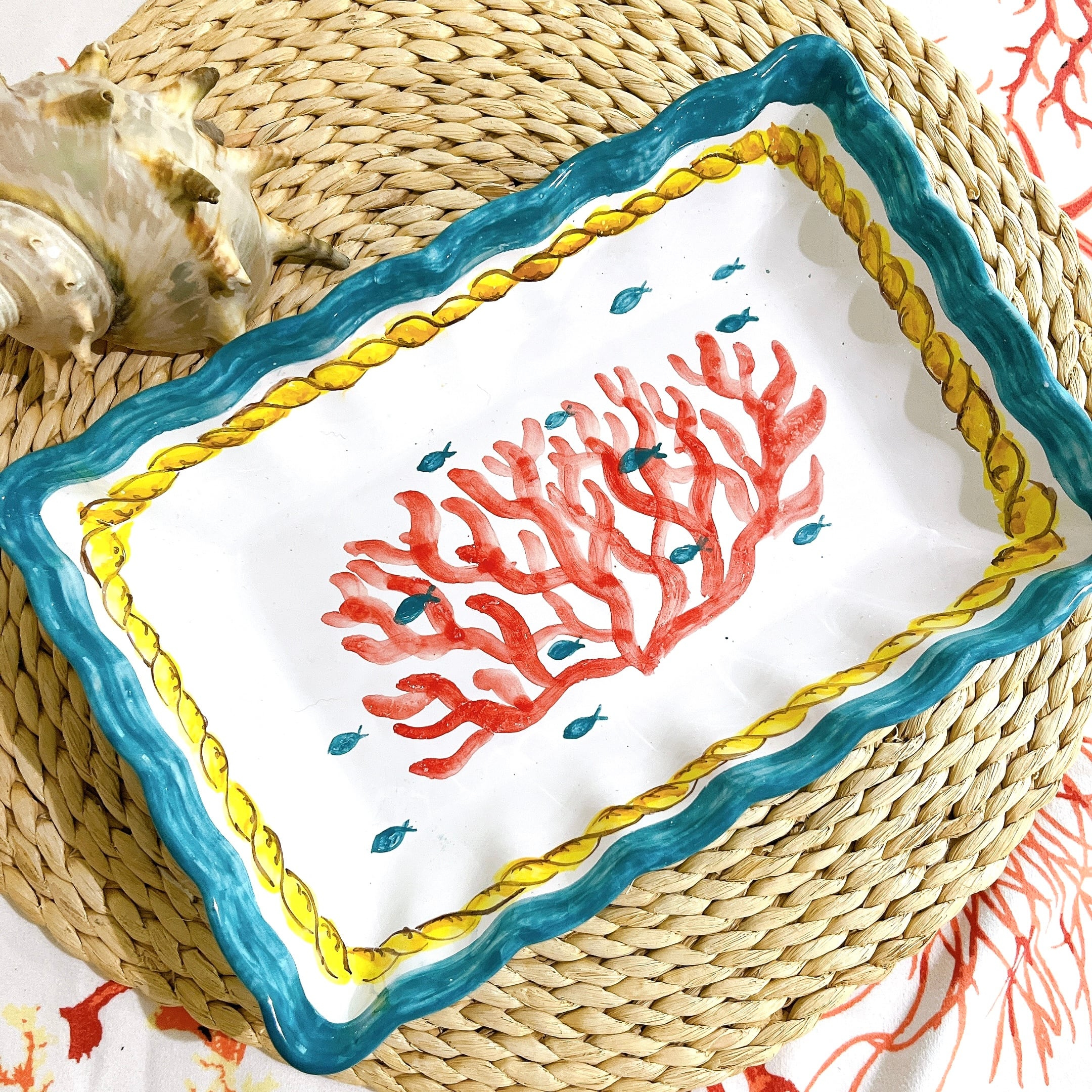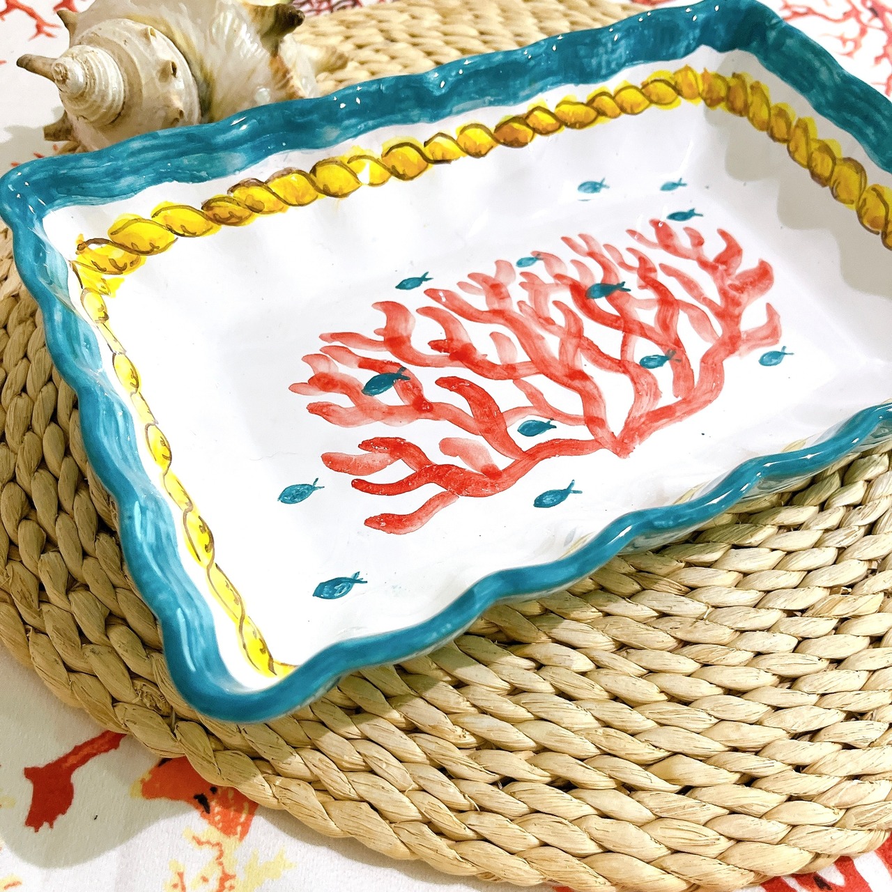 マヨリカ焼き スクエア皿 大 サンゴとロープ柄