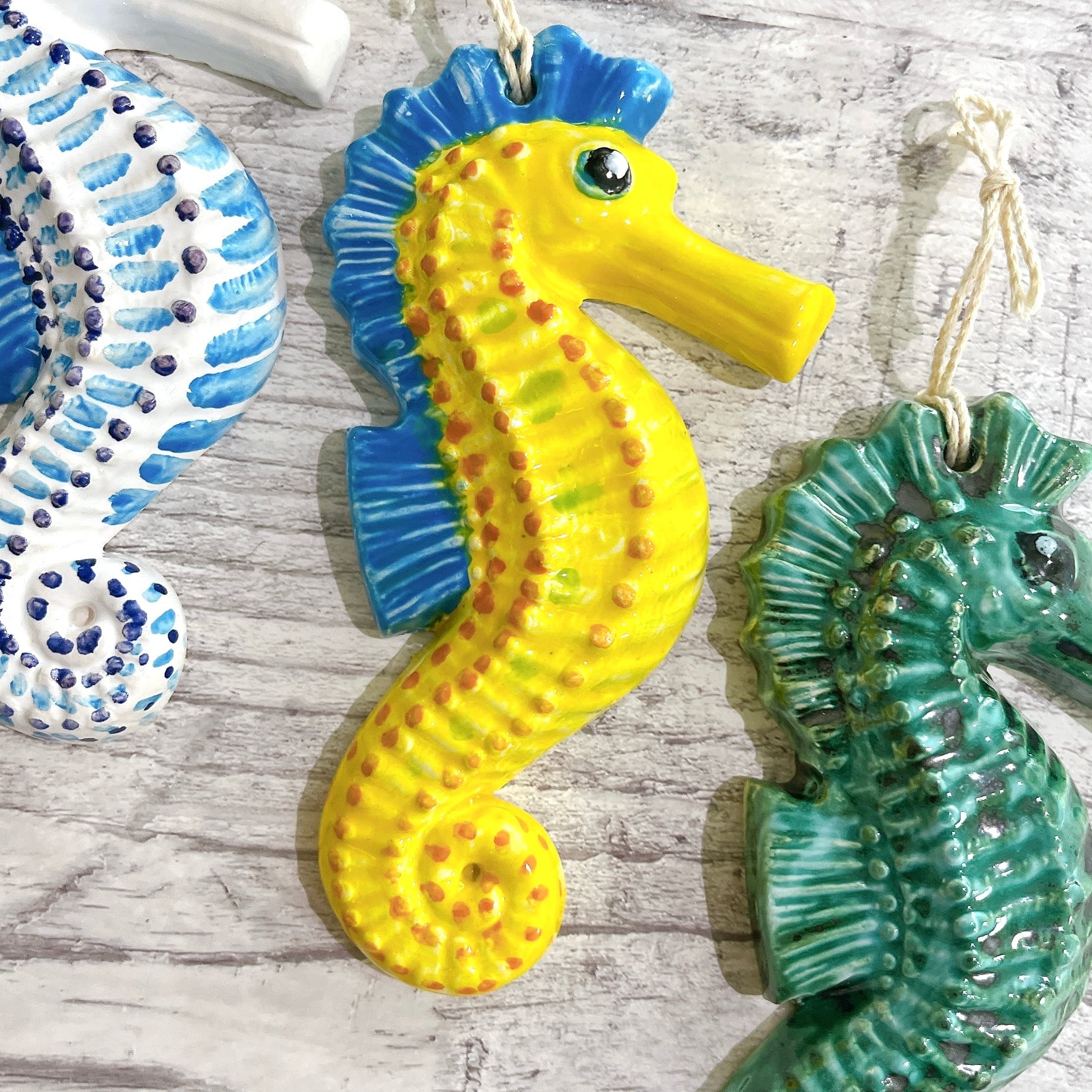 浦安の陶器工房<Bottega Junko>からお届けするマヨリカ焼きのタツノオトシゴです。