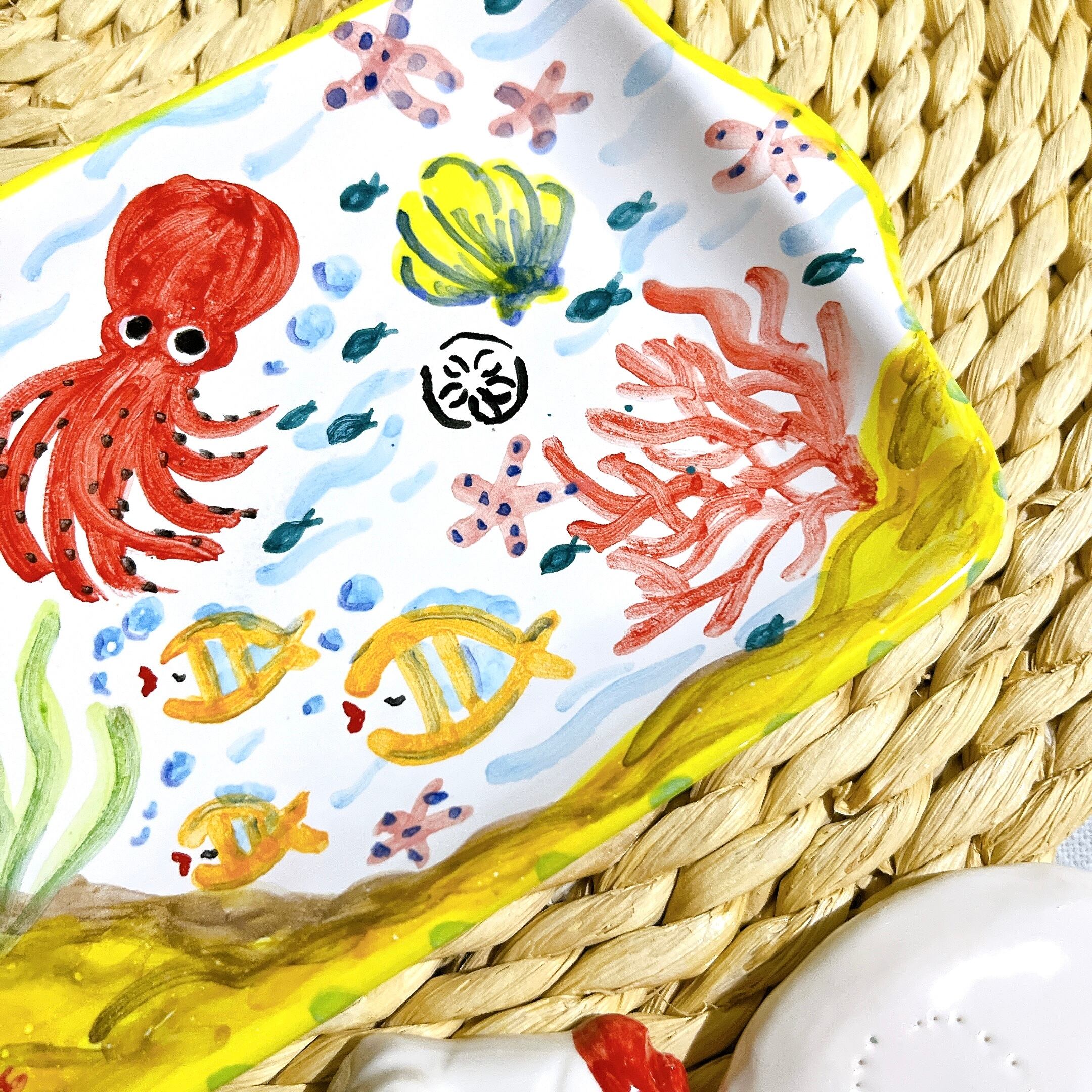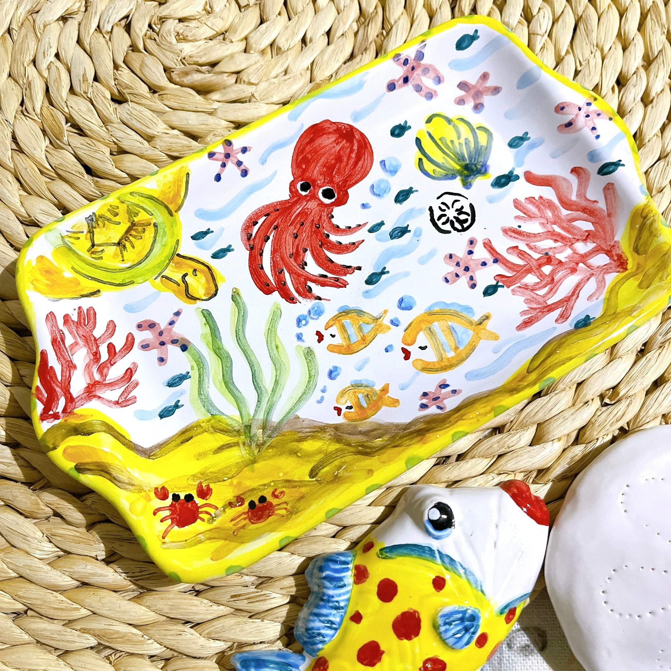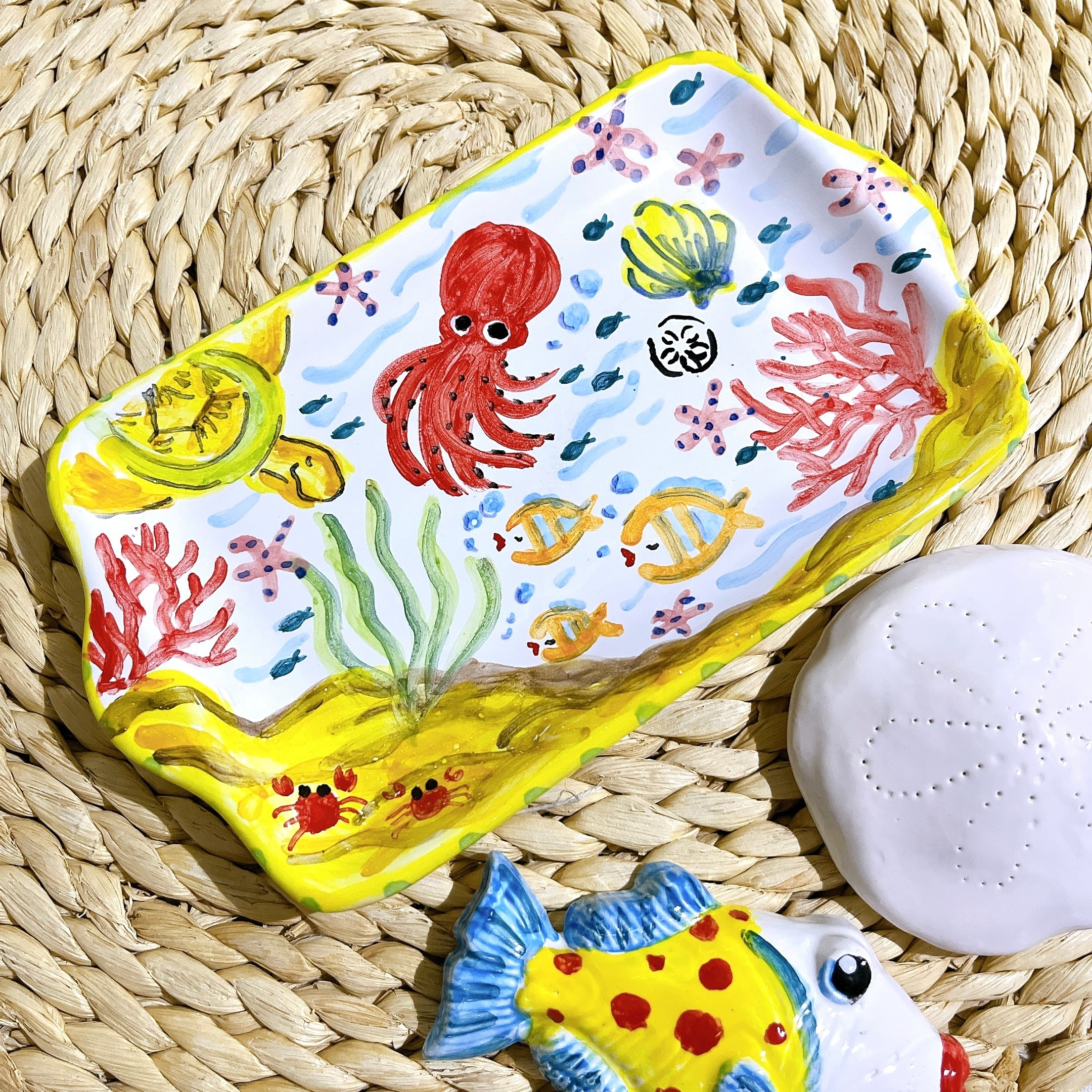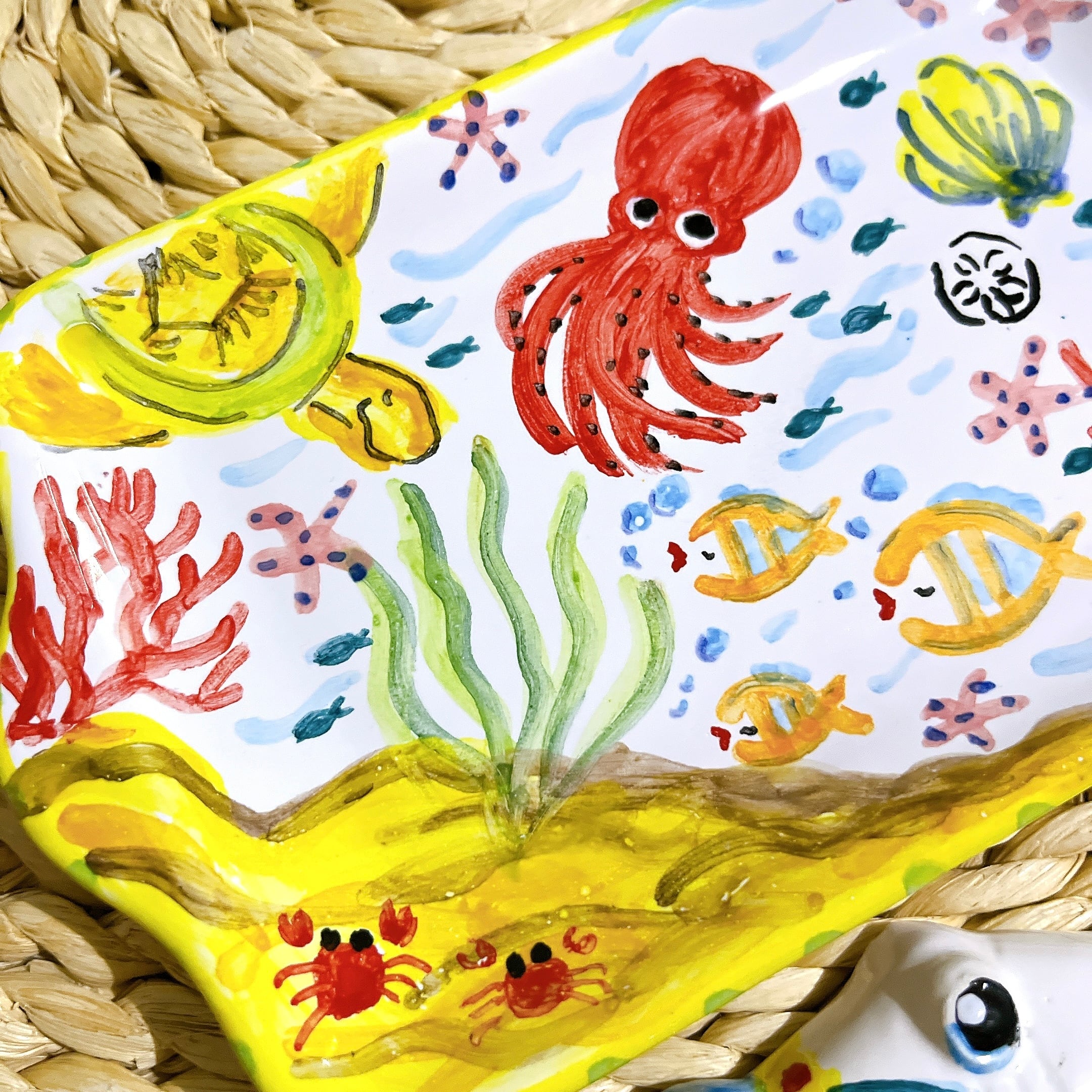 浦安の陶器工房<Bottega Junko>からお届けするマヨリカ焼きのトレイです。