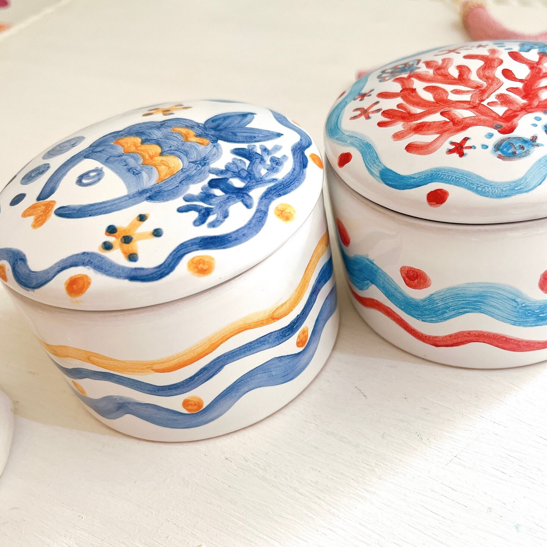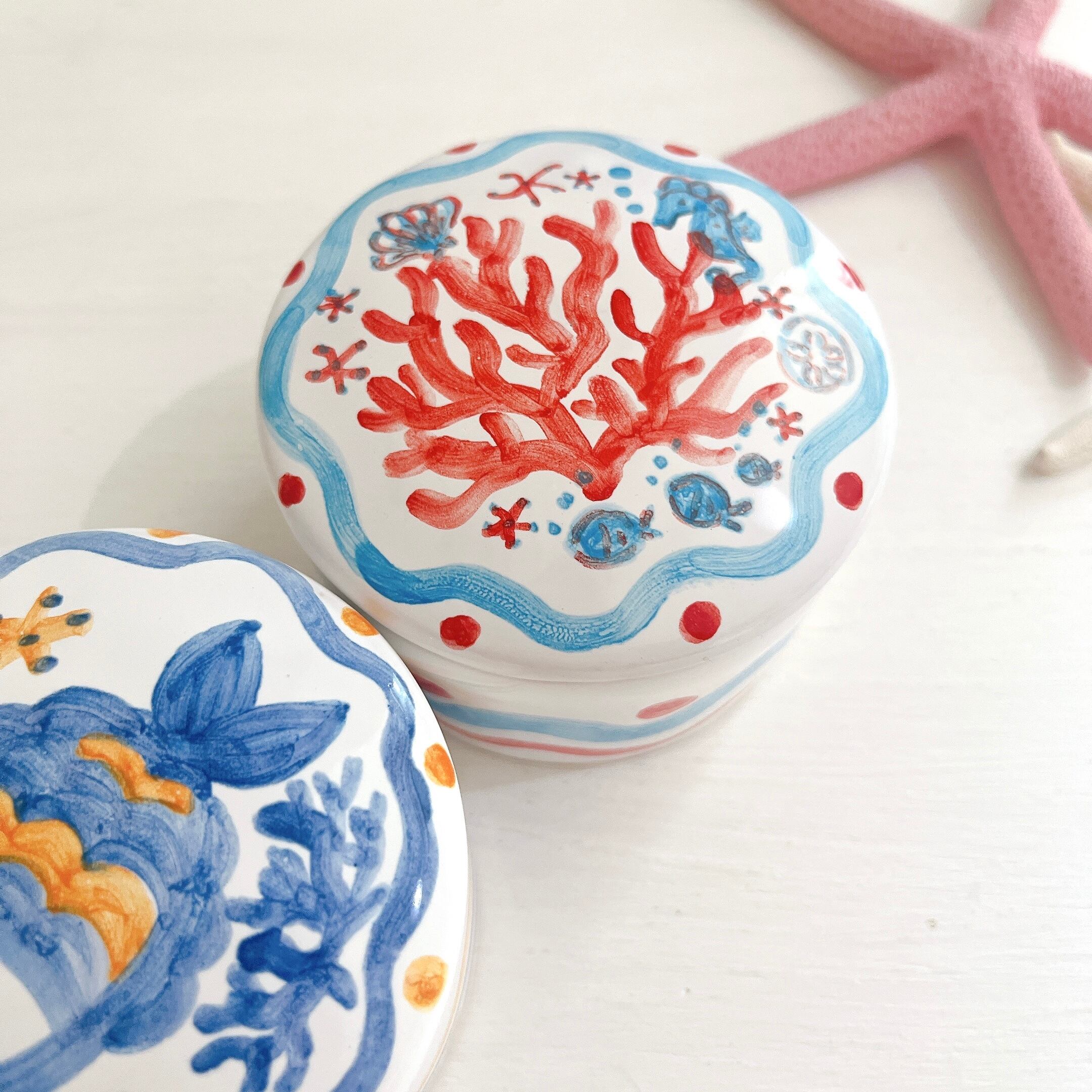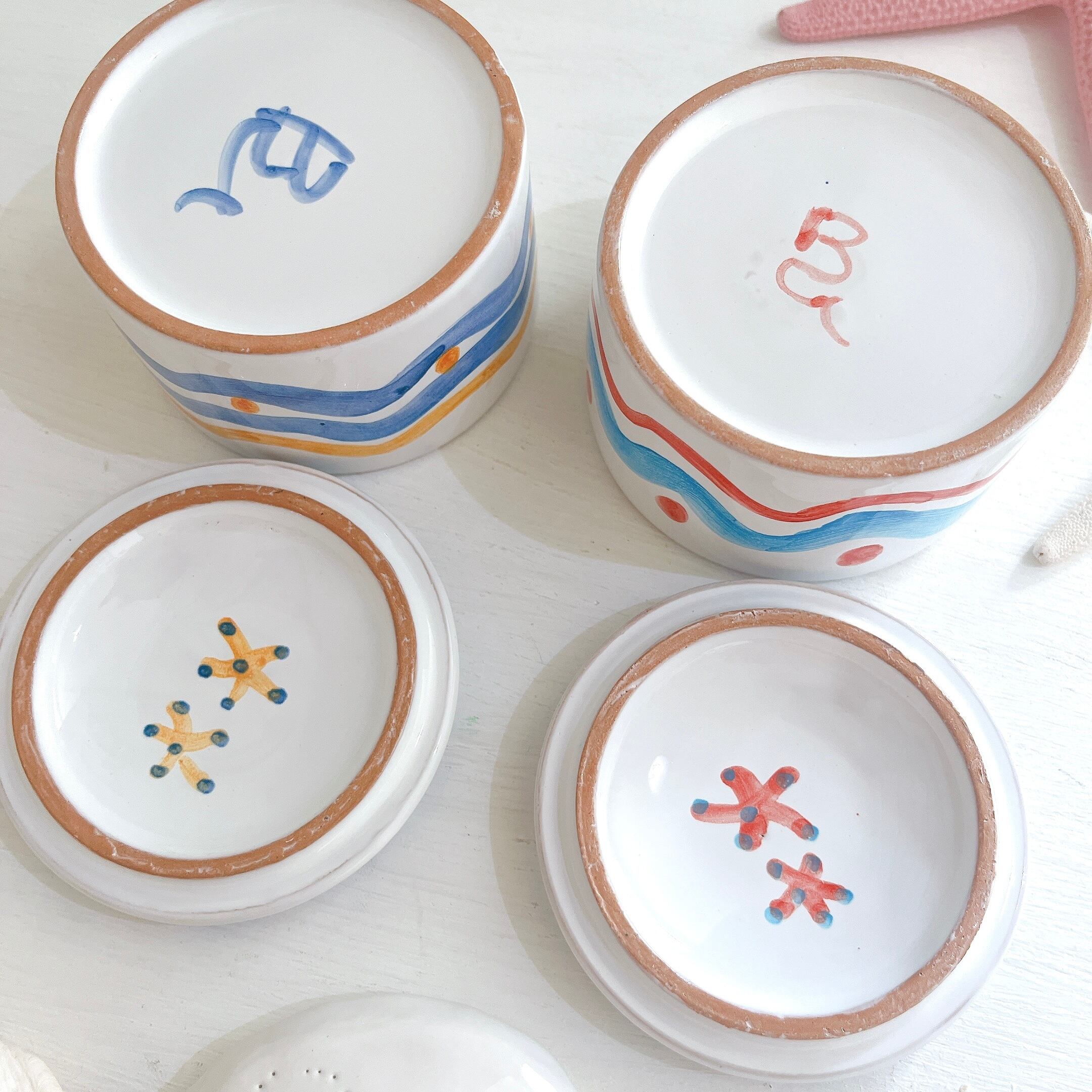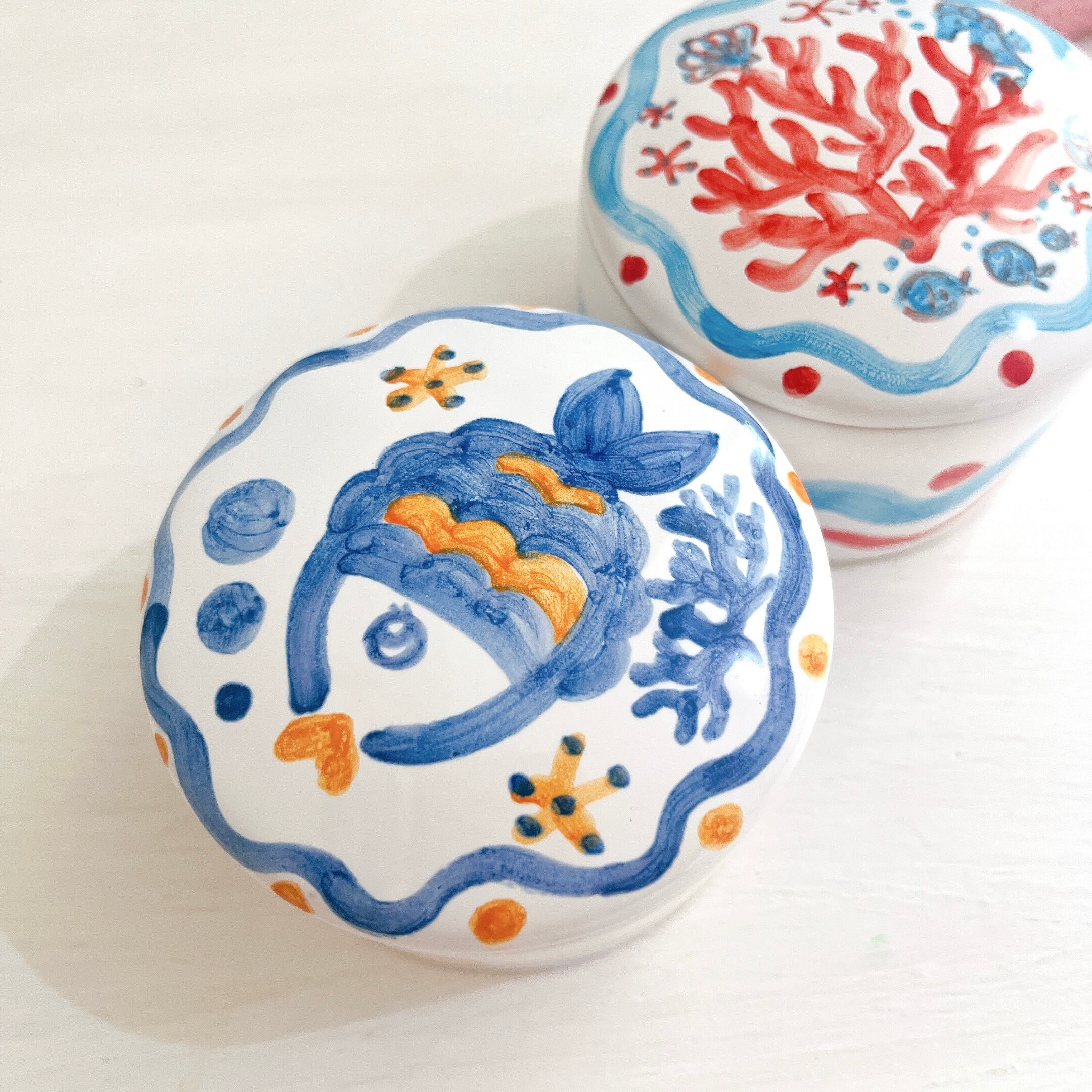 浦安の陶器工房<Bottega Junko>からお届けするマヨリカ焼きの小物入れです。
