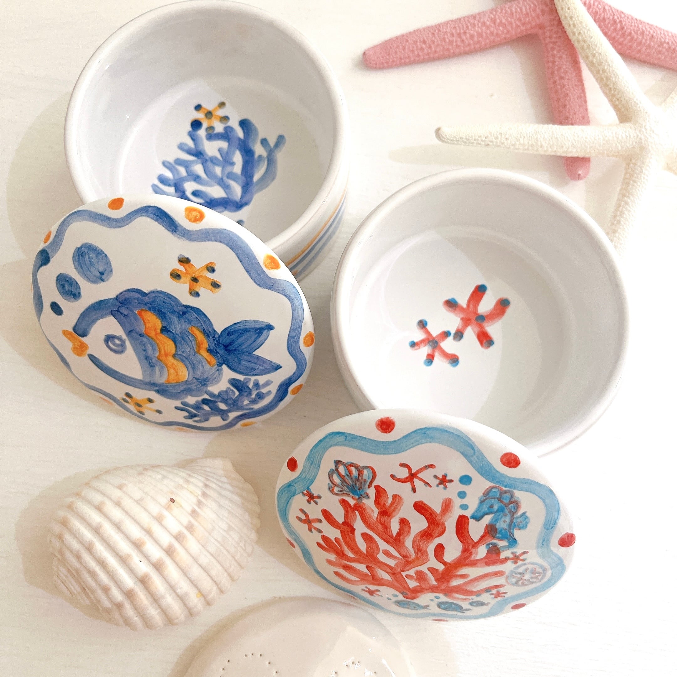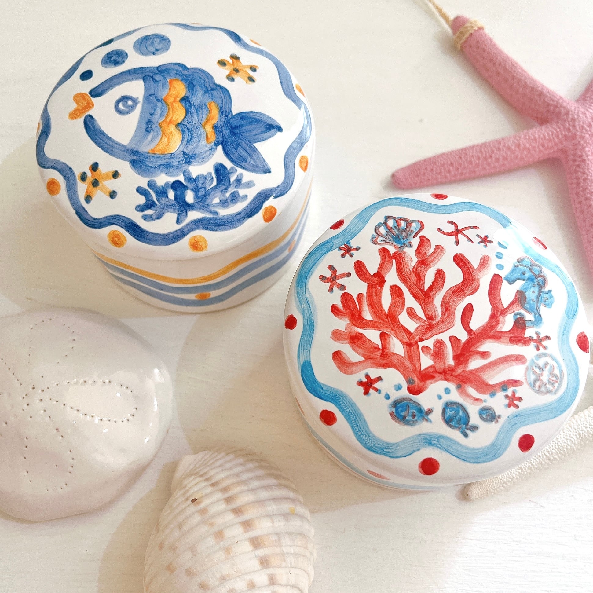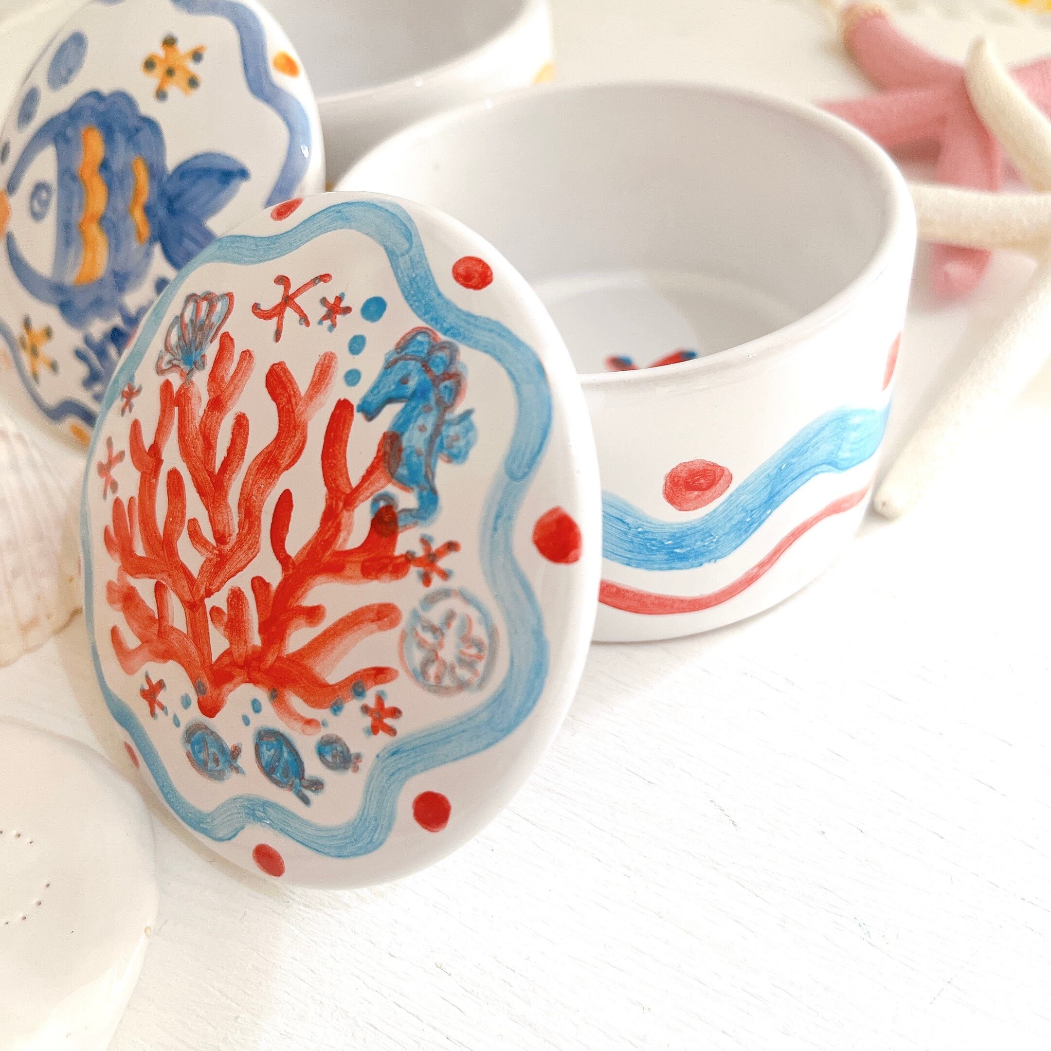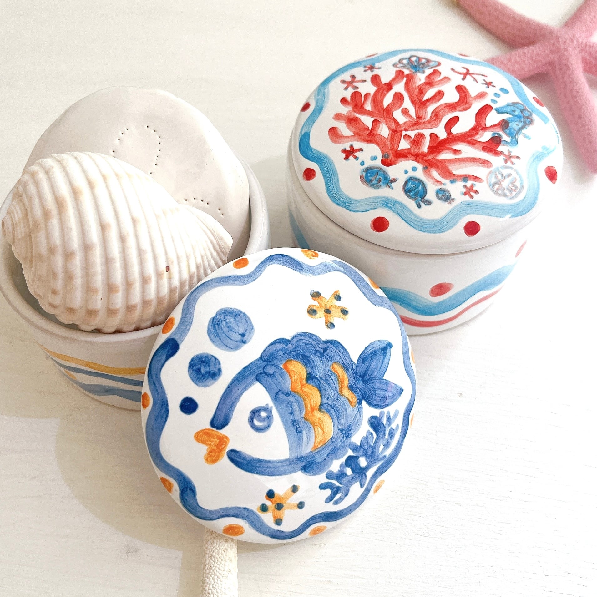 浦安の陶器工房<Bottega Junko>からお届けするマヨリカ焼きの小物入れです。