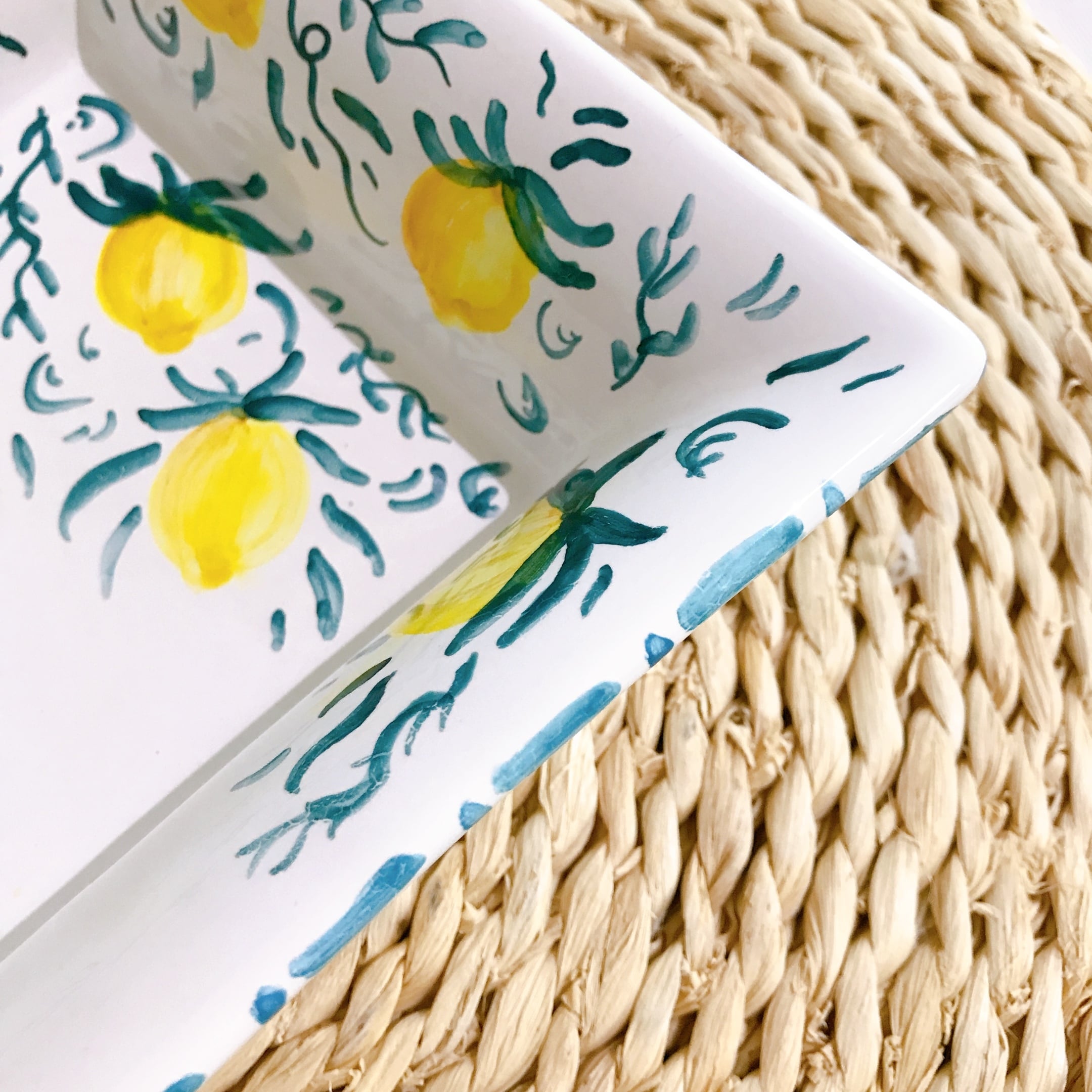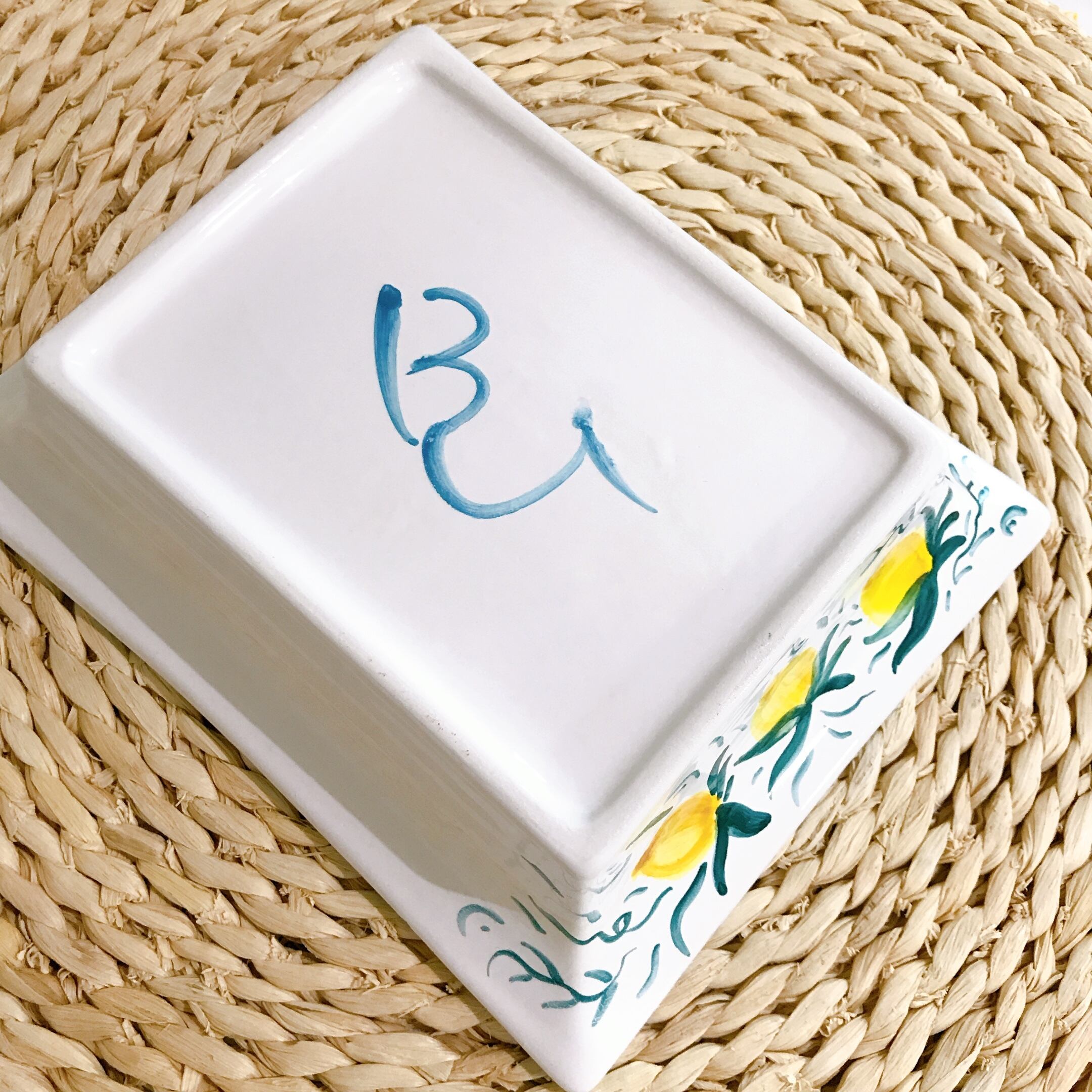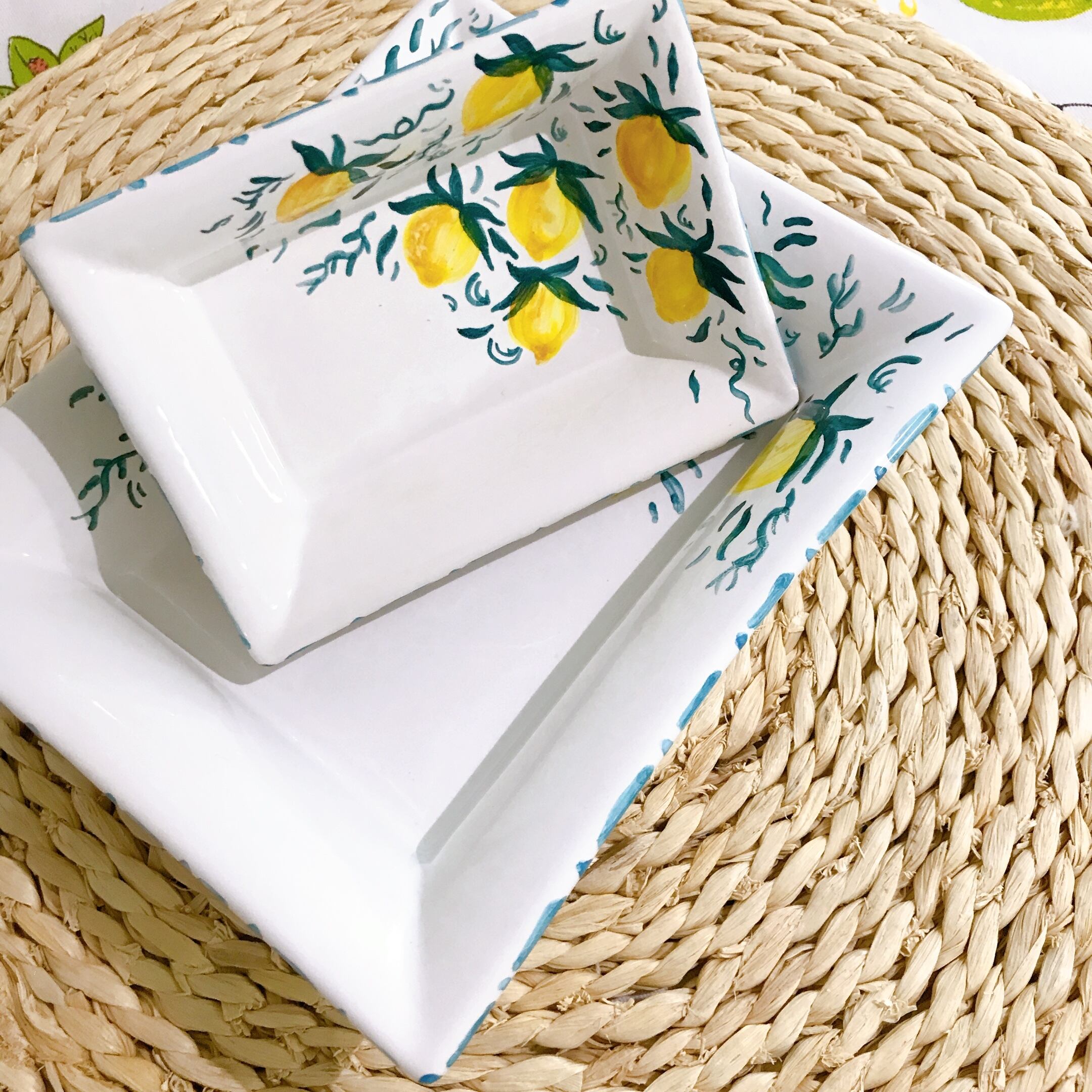 浦安の陶器工房<Bottega Junko>からお届けするマヨリカ焼きのスクエア皿です。